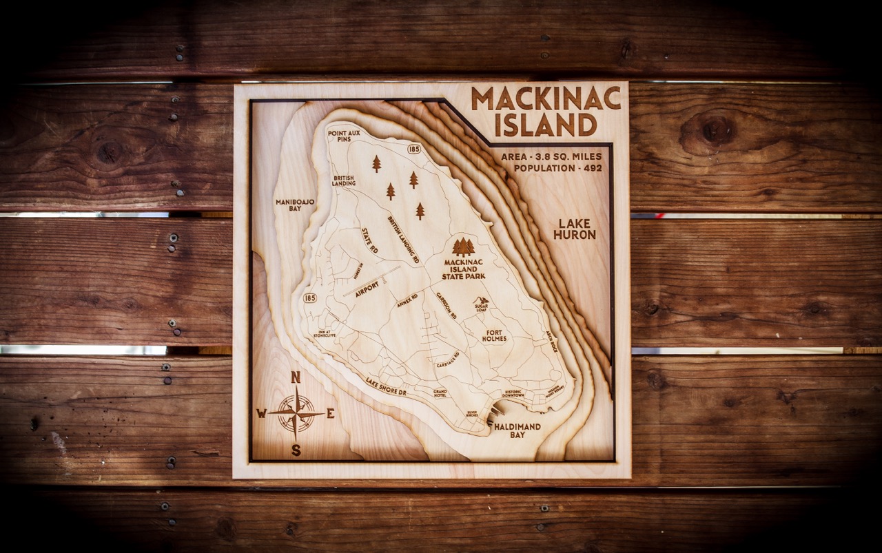 Take home a little piece of Michigan with this wood map of Mackinac Island!