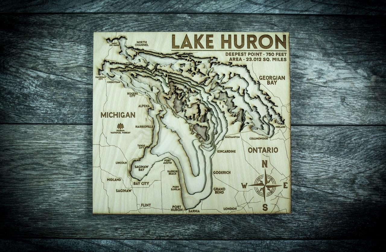 Lake Huron Wood Map - You can now hold one of the Greatest Lakes ever in your hand! This makes the perfect gift or display piece on any shelf, desk or wall.
