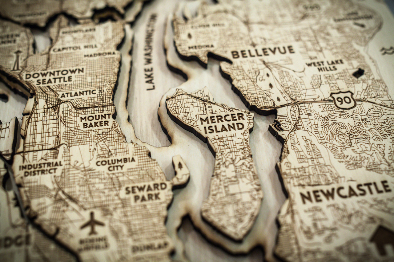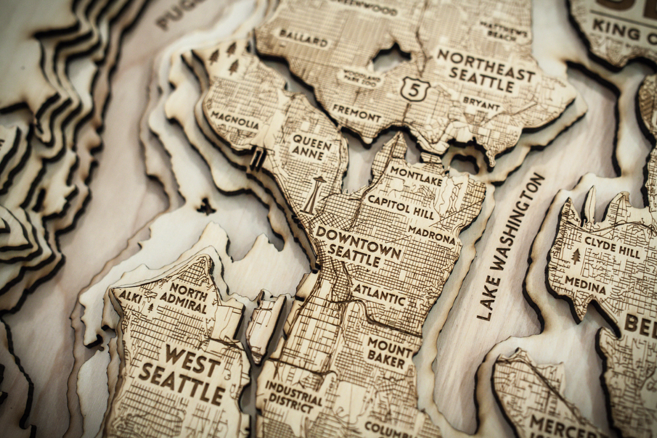 The Seattle 3D wood map is one of our most detailed pieces with over 10,000 individual lines carved into wood. This map will make the perfect gift or collectable piece for any West Coaster. Accurate sea contours are intricately mapped in wood for an awesome convo piece. Medium and Large sizes come with hanging hardware installed. Small sizes typically sit well on shelfs or mantels.
