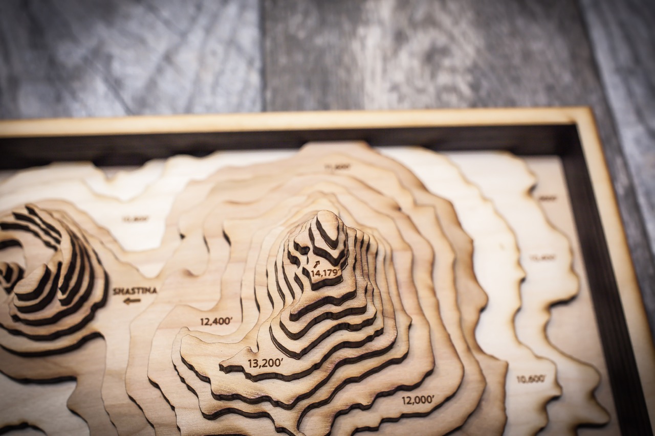 Mount Shasta is a beautiful, fun place to hike and explore! This volcano map is a must-have keepsake of this awesome 14k+ high mountain. This piece is awesome on tables, shelves, and desk so it can be admired from all angles.