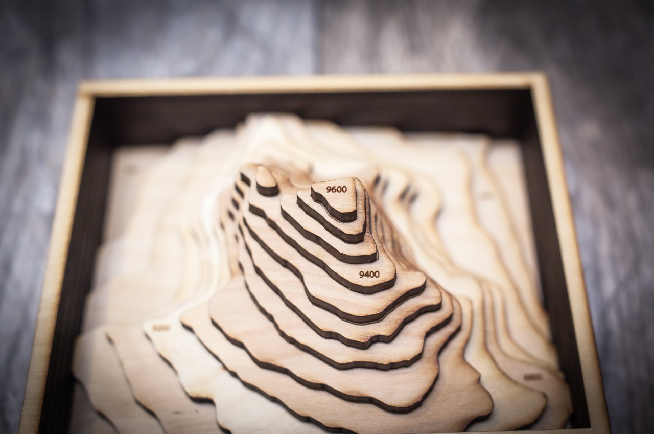 Celebrate your hike with this Mount Tallac map! To-scale topography captures how high you climbed. Remember all the fun (or agony) with this eye catching desk, shelf, or table piece!
